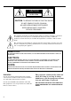 CAUTION RISK OF ELECTRIC SHOCK DO NOT OPEN CAUTION: TO REDUCE THE RISK OF ELECTRIC SHOCK, DO NOT REMOVE COVER (OR BACK) NO USER-SERVICEABLE PARTS INSIDE REFER SERVICING TO QUALIFIED SERVICE PERSONNEL. The lightning flash with arrowhead symbol, within an equilateral triangle, is intended to alert the user to the presence of uninsulated “dangerous voltage” within the product’s enclosure that may be of sufficient magnitude to constitute a risk of electric shock.