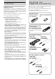 Preparing the remote control ENGLISH Inserting the batteries When using the remote control as computer mouse 1 Press firmly and slide the battery cover off. USB mouse cable (1 m/3.3 ft.) [1] [for IBM / Macintosh] No. 770707000 2 Insert the two supplied batteries (size AAA/ R03). Ensure that the polarities (+ and –) of the batteries are aligned correctly. PS/2 mouse cable (1 m/3.3 ft.) [1] [for IBM PS/2] No. 770706000 3 Slide the cover back until it snaps into place. Soft pouch [1] No.
