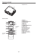 Overview (continued) Bottom side 1 Adjustment feet 1 Remote control ON STANDBY MAGNIFY ASPECT 8 1 2 3 4 5 6 VOL UP EFFICIENT MODE DOWN KEYSTONE AV MUTE VIEWER This model does not have these functions. This model does not have this function. 11 ENTER 7 10 3D AUTO POSITION MENU 9 12 FREEZE VIDEO 1 COMPUTER UNPLUG USB DISP. S-VIDEO 2 LAN DISP.