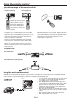 Using the remote control Operational range of the remote control Front of projector 30° Rear of projector 30° 30° 30° Operate the remote control within a distance of 10 m (30 feet) from the projector, pointing the light beam at the remote control photosensor (front or rear) of the projector. • Keep the remote control photo-sensor out of direct sunlight or fluorescent lamp light. • Keep the remote control photo-sensor at least 2 m (6 feet) away from fluorescent lamps.