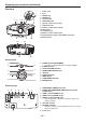 Preparing your projector (continued) Overview 6 1 2 34 5 8 7 10 9 11 1 2 3 4 5 6 7 8 9 10 11 12 13 14 Lamp cover Lens FOCUS ring ZOOM ring Control panel LENS SHIFT dial Remote control sensor (top) Adjustment feet Remote control sensor (front) Intake vent Terminal panel Remote control sensor (rear) Kensington Security Lock Standard connector Exhaust vent 12 13 14 Control panel 1 2 6 7 3 8 4 5 9 1 POWER button (ON/STANDBY) • The status is changed between ON and STANDBY.