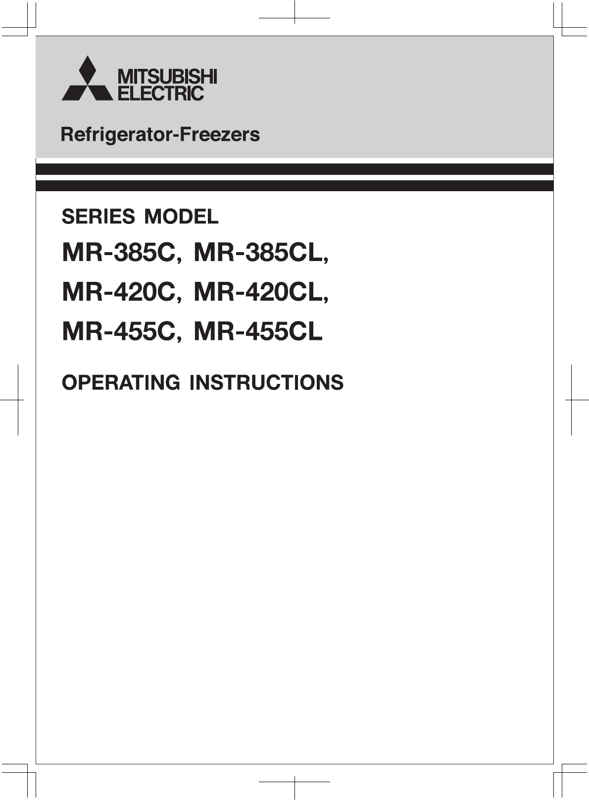 Shelf Freezer Pocket loe Tray Ice Cube Box Door Gasket Sliding C: Egg Rack g Case Temperature Control Free Pocket (freezer compartment) Temperature Control (refrigerator compartment) Room Light Adjustable Pocks PCS) (MR-455CL 3 PCS) Glass Sharif PCS) Door Gasket (MR-455CL 4 PC8) Bottle Pocket Vegetable Case Cover Battle Stopper Drain Pan Vegetable Case Leveling Legs Toe Rile This illustration shows series models MR-385CL, MR-420CL, MR-455CL