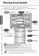 Other Issues A power outage occurred Before Use Minimize the frequency of opening the doors, and avoid adding more food. Operation panel settings other than the temperature settings may change. Check the settings. (Child Safety Lock, etc.) To move the refrigerator or change its orientation 1 Remove the adjustable support cover, and then rotate and raise the adjustable supports. X Page 7 Placing Food Inside 2 Lay protective material under the casters and rear supports.