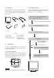 3 INSTALLATION AND CONNECTION On the back of the monitor four kinds of plug-in connections are provided: AC power connector for the AC input, DB915P connector and BNC connector for video signal input and USB ports for USB communication. 3.2.2 Connecting to An Apple Macintosh Computer 3.1 For Macintosh Adapter AD-A205, contact your dealer. Figure 6 shows the SC-B104 cable and AD-A205 Adapter(option) to the video port in an Apple Macintosh. AC Power Connection 1. 2.