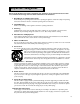 11. Lightning For added protection for this TV receiver during a lightning storm, or when it is left unattended and unused for long periods of time, unplug it from the wall outlet and disconnect the antenna or cable system. This will prevent damage to the TV receiver due to lightning and power-line surges. 12. Power Lines An outside antenna system should not be located in the vicinity of overhead power lines or other electric light or power circuits, or where it can fall into such power lines or circuits.