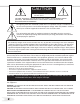CAUTION RISK OF ELECTRIC SHOCK DO NOT OPEN CAUTION: TO REDUCE THE RISK OF ELECTRIC SHOCK, DO NOT REMOVE COVER (OR BACK). NO USER SERVICEABLE PARTS INSIDE. REFER SERVICING TO QUALIFIED SERVICE PERSONNEL. The lightning flash with arrowhead symbol within an equilateral triangle is intended to alert the user of the presence of uninsulated “dangerous voltage” within the product’s enclosure that may be sufficient magnitude to constitute a risk of electric shock.