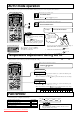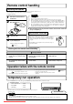 Remote control handling Replacing the batteries The following cases signify exhausted batteries. Replace old batteries with new ones. • Receiving beep is not emitted when a signal is transmitted. • Display fades away. NOTE 1 2 Pull out the cover and take out old batteries. • Do not use old and new batteries together. • Remove the batteries when the remote control is not used for a long period.