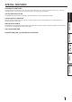 SAFETY PRECAUTIONS In the interest of safety, please observe the following precautions: POWER REQUIREMENT WARNING: THIS APPARATUS MUST BE EARTHED. PROTECTIVE MEASURES Use of the unit during emission of smoke or abnormal sounds (without adopting countermeasures) is dangerous. In such a case, unplug the power cord from the source outlet immediately, and request maintenance service from the sales dealer.