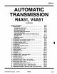 23D-18-2 R4A51, V4A51 - Rear Output Shaft DISASSEMBLY AND ASSEMBLY 21 22 23 24 25 3 2 255 Nm 9 4 7 1 5 10 12 6 8 19 20 16 10 18 11 13 15 Apply gear oil to all moving parts before installation. 14 17 "FA AA" "EA AB" "DA AC" "CA Disassembly steps 1. Snap ring 2. Clutch hub 3. Low speed gear 4. Needle bearing 5. Snap ring (V4A51-7) 6. Rotor (V4A51-7) 7. Steel ball 8. Jam nut 9. Ball bearing 10.