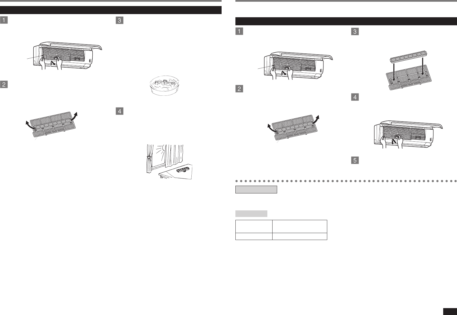 When the capacity is lowered because of dirt, etc., it is necessary to replace the air cleaning filter.