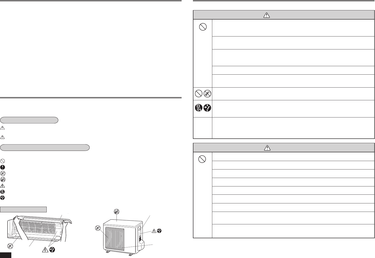 (Black) : Never step onto the indoor/outdoor unit and do not put anything on them.