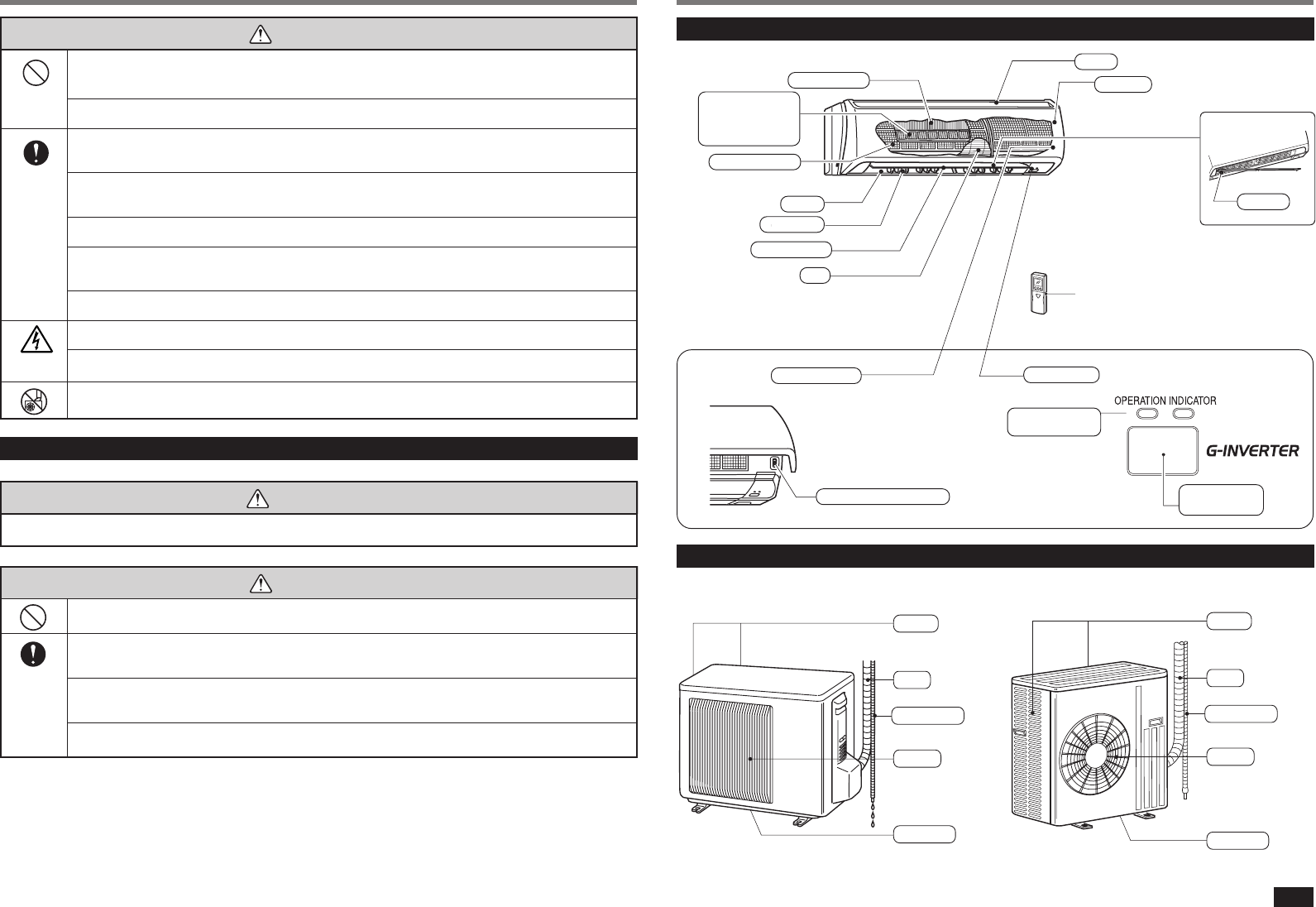 • Water may enter the unit and degrade the insulation. This may cause an electric shock.