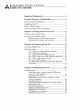 Table MITSUBISHI OWNER'S of Contents GUIDE Important Safeguards Preface: Welcome Summary of Special Unpacking Your What's in Each Some Conventions Chapter ................................................... to Mitsubishi Features Chapter Used in this Guide to Know Panel Overview of the Remote Control Basic 6 7 .............................................................. of the Control Overview 5 ................................................... Overview Chapter .......