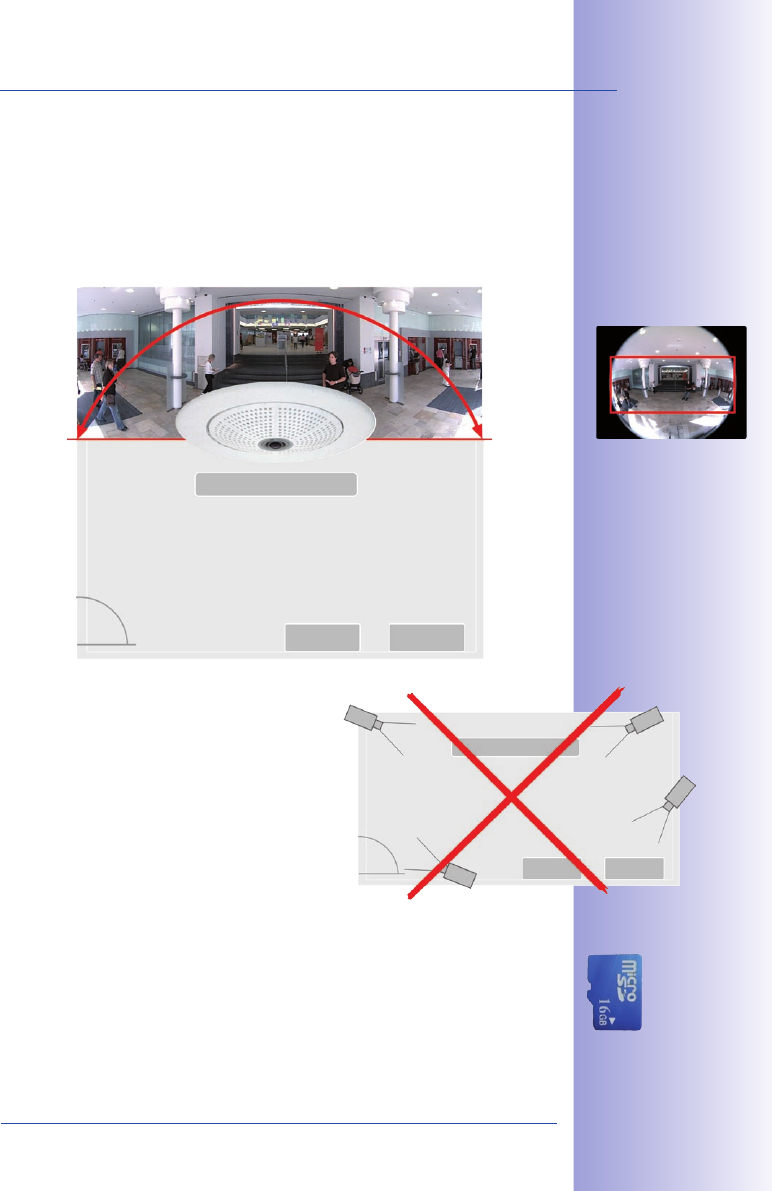angle panoramic view spanning 180° if the camera is mounted on a wall, providing a
