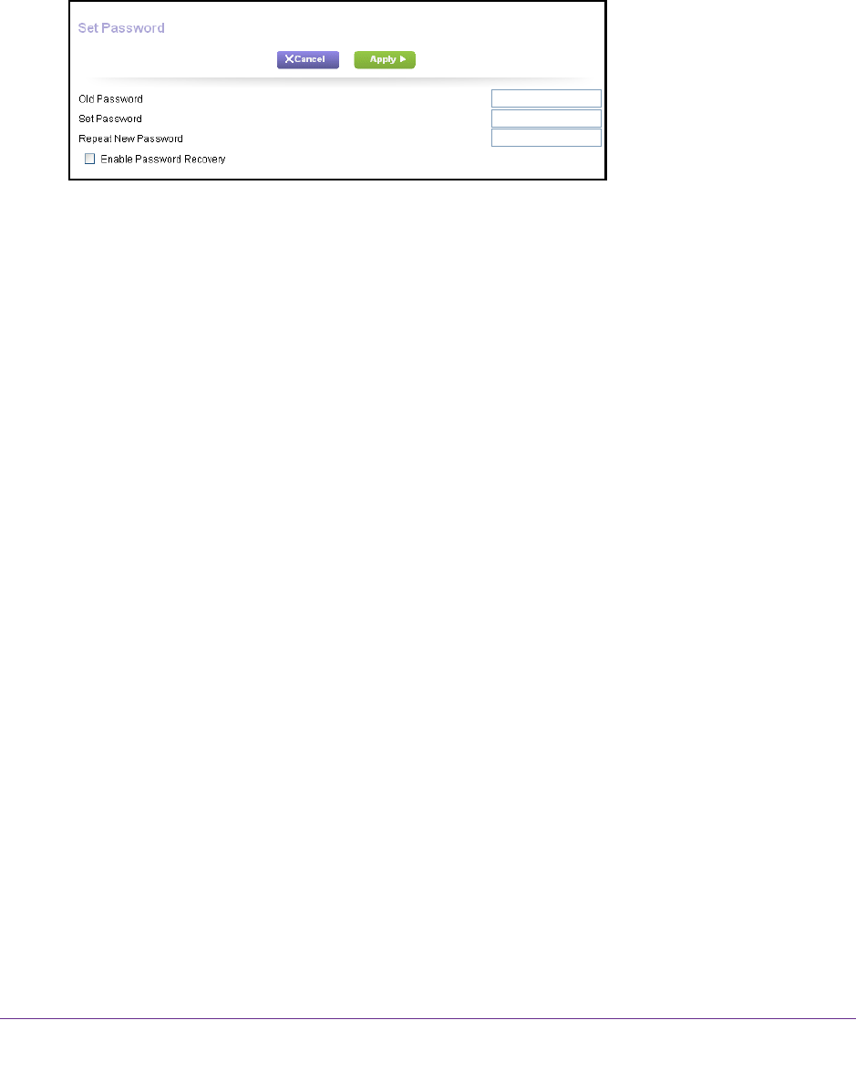 NETGEAR recommends that you enable password recovery. This feature lets you