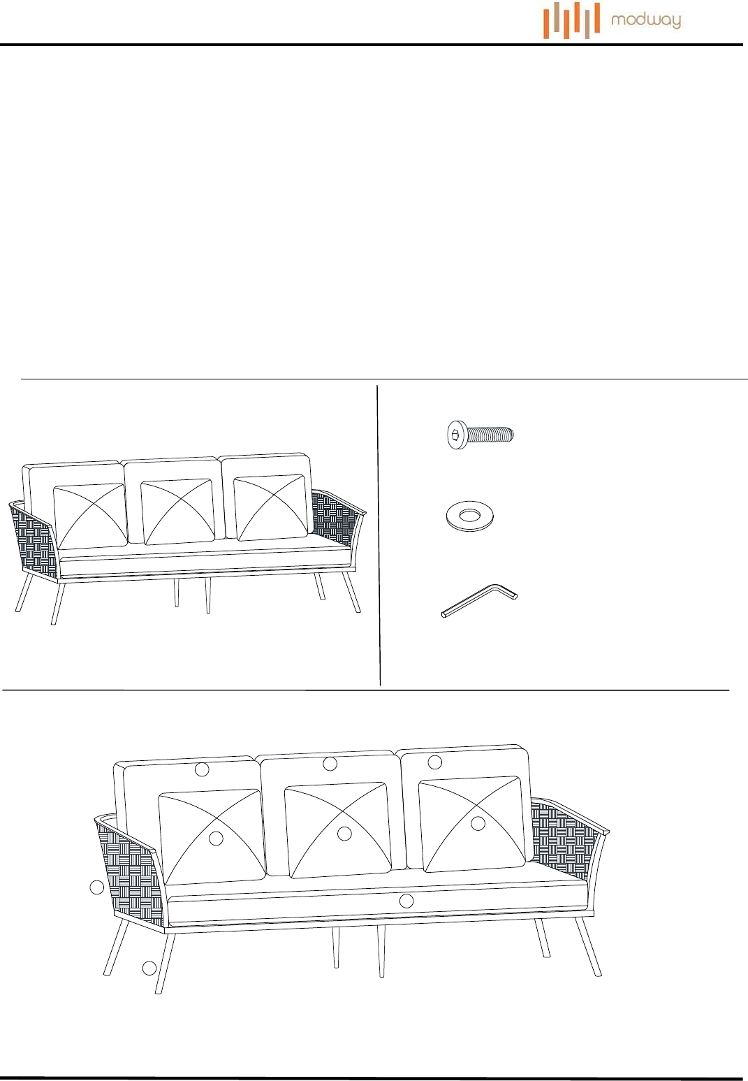 1 Sofa Body x1 2 Base with legs x 1 3 Seat Cushion x 1