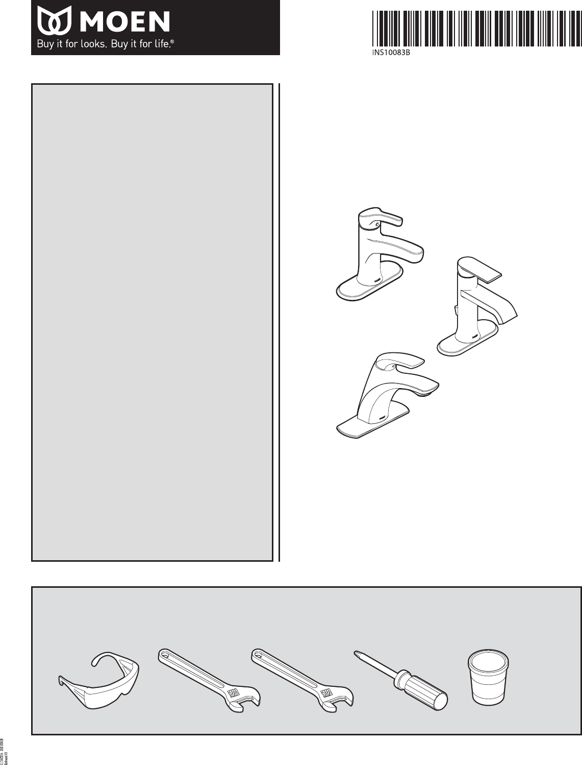 INS10083B - 6/16 Please Contact Moen First For Installation Help, Missing or Replacement Parts (USA) 1-800-BUY-MOEN (1-800-289-6636) Mon - Fri 8:00 AM to 7:00 PM, Eastern Sat. 9:00 AM to 3:00 PM Eastern WWW.MOEN.COM Installation Guide Guía de Instalación Guide d’installation (Canada) 1-800-465-6130 Mon - Fri 7:30 AM to 7:00 PM, Eastern WWW.MOEN.