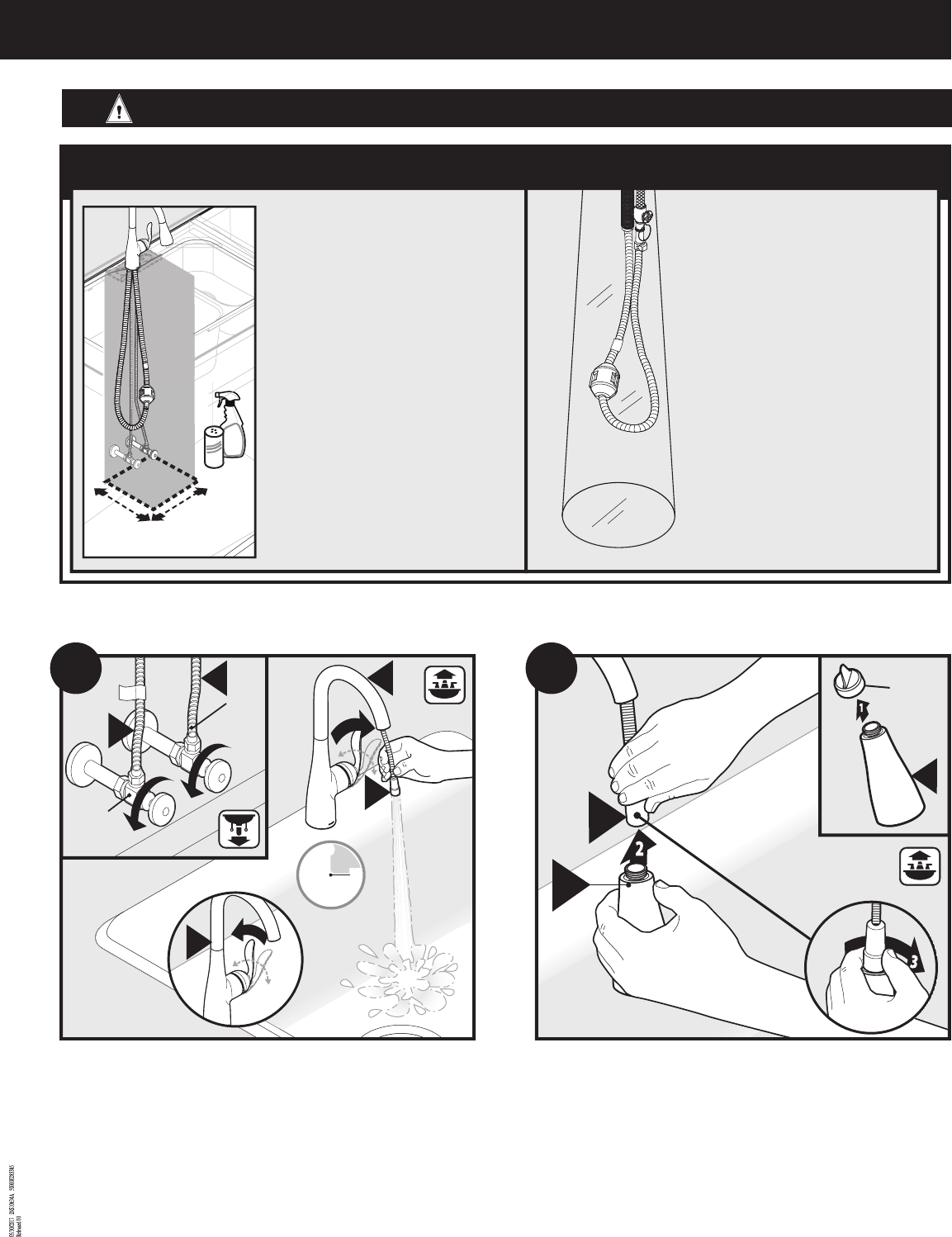 2. Hold Pulldown Hose (J) and turn on Faucet (H), allow water to run for 15 seconds.