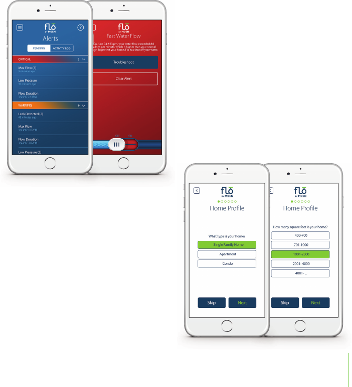 your Flo by Moen App notiļ¬ es you. Alerts let