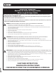 INS11016C - 04/22 Grounding Instructions Instrucciones de Conexión Directives de mise à la terre This product should be grounded. In the event of an electrical short circuit, grounding reduces the risk of electric shock by providing an escape wire for the electric current. This product is equipped with a cord having a grounding wire with a grounding plug. The plug MUST BE plugged into an outlet that is properly installed and grounded. Este producto debe conectarse a tierra.