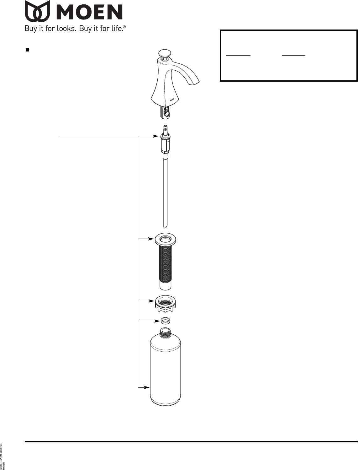 Illustrated Parts Order by Part Number TRANSITIONAL SOAP/LOTION DISPENSER MODEL FINISH S3948C S3948SRS Chrome Spot Resist Stainless Underdeck Service Kit 173490 Rev. 6/14 TO ORDER PARTS CALL: 1-800-BUY-MOEN www.moen.