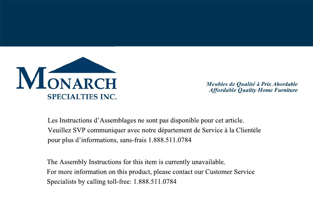 Veuillez SVP communiquer avec notre département de Service à la Clientèle