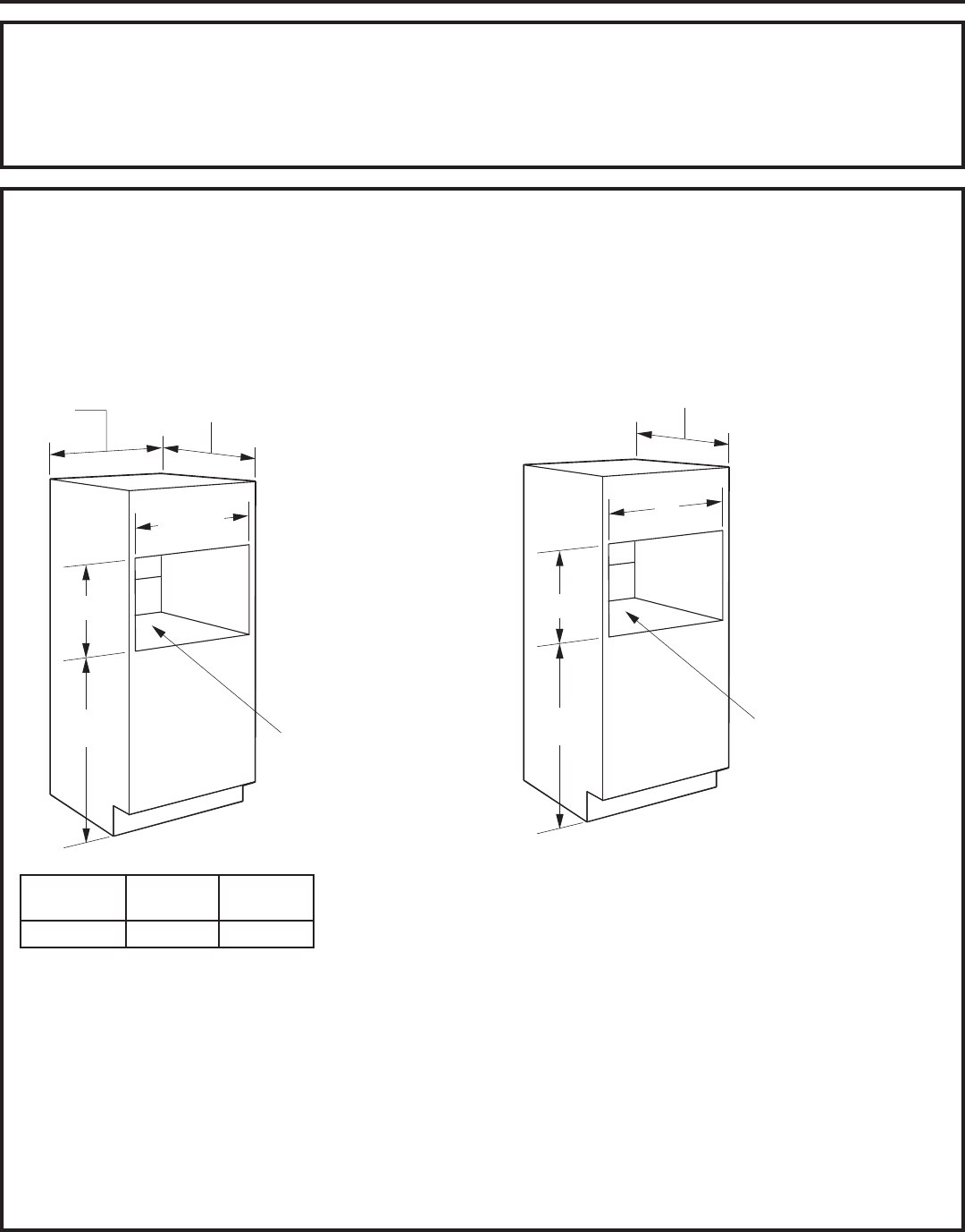 Order a 30Ǝ wide single oven cabinet or cut the opening in a wall to the dimensions shown.
