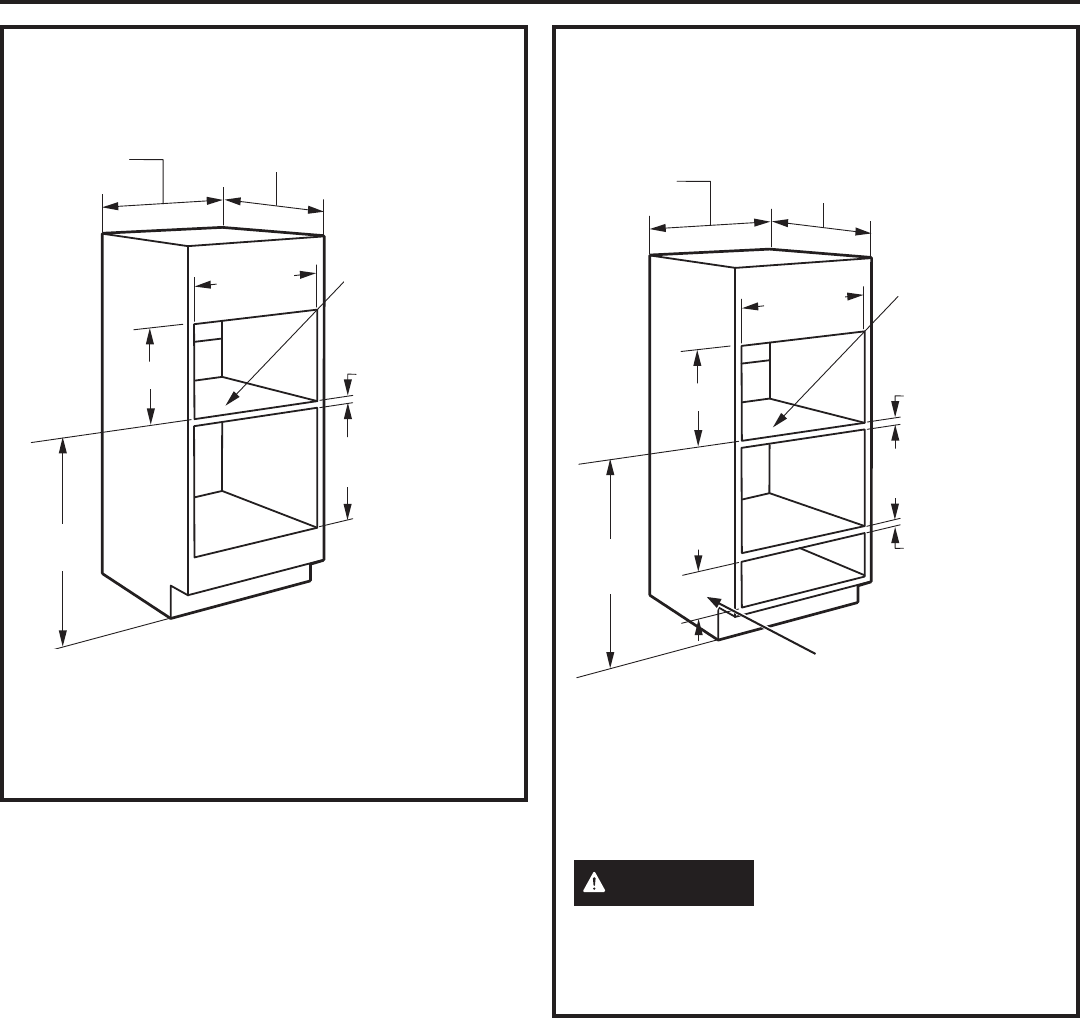 and a single oven, use the dimensions shown. The