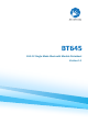 FSC-BT645 Datasheet 2. General Specification Table 1: General Specifications Categories Wireless Specification Features Implementation Bluetooth Version Bluetooth low energy 4.2 Frequency 2.402 - 2.480 GHz Transmit Power 1.
