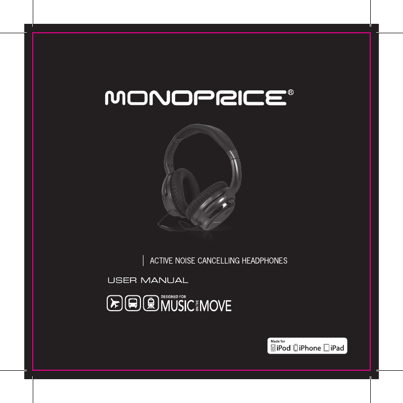 SAFETY GUIDELINES • Read these instructions carefully, paying close attention to all safety guidelines. • Before use, ensure the volume level of your source material is set to the lowest setting. • Do not pull on the cord. • Do not use the headphones near a heat source. Thank you for purchasing the Monoprice® Noise Cancelling Headphones with • Long exposure to loud music may cause hearing loss or damage, so keep volume at a reasonable level and take a break once in a while.