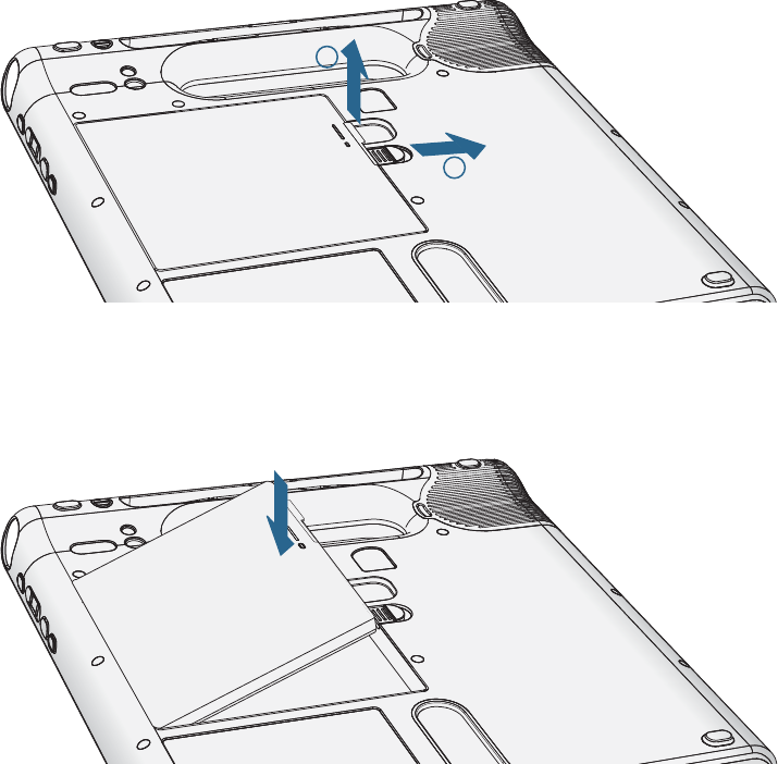 1. With the back of the unit facing you, slide and hold the battery latch.