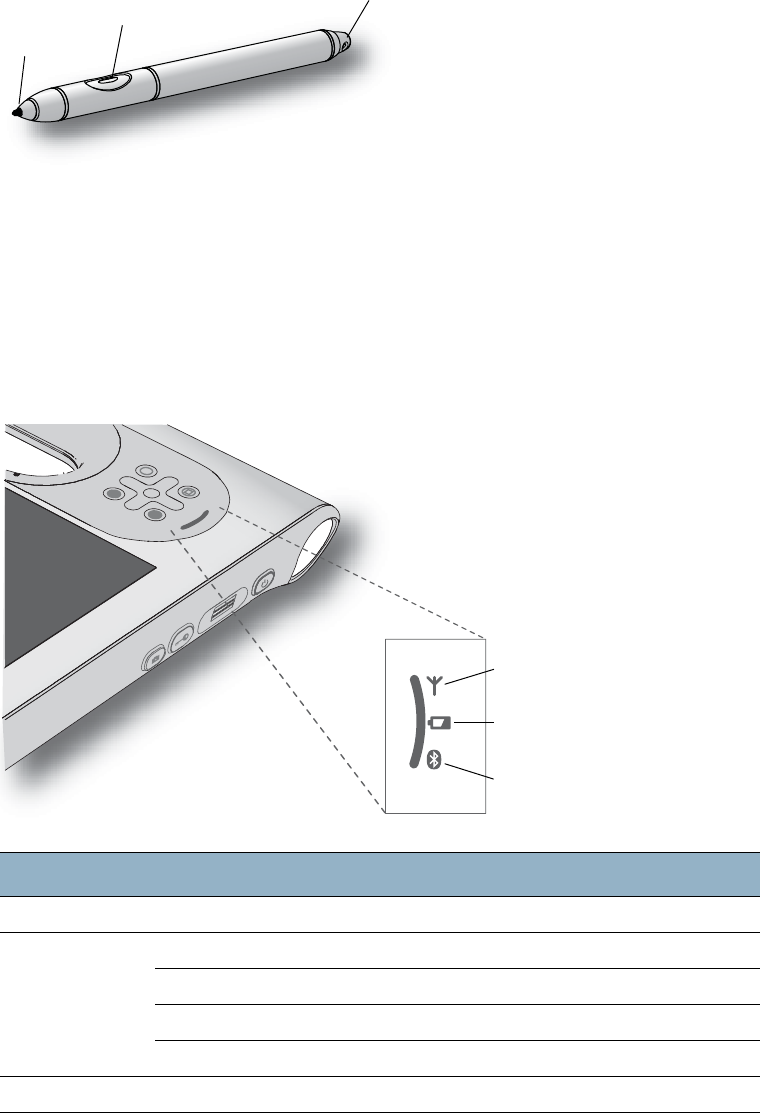 pressure-sensitive tip, a function button, and an eraser. The pen contains no batteries and