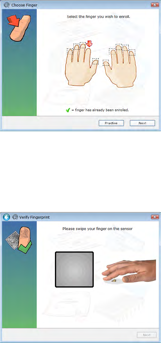 5. Place the selected finger over the fingerprint reader and slowly drag your finger across
