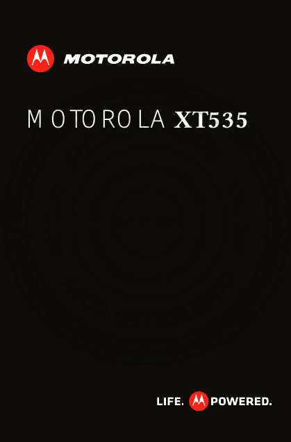 Congratulations MOTOROLA XT535 Your MOTOROLA XT535 helps you seamlessly manage your “Office” and “Outdoor” lifestyles. • Lifeproof: Your phone is water-resistant, dustproof, and has a scratch-resistant screen, because accidents happen. • Dashboard: Easy access to all your favorite Outdoor apps, like Camera, Compass, and a pedometer, see“Dashboard” on page 12. • MotoSwitch: MotoSwitch is a dynamic interface that gives you seamless access to content that is relevant to you. For details, see on page 13. Jan.
