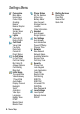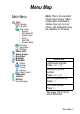 Menu Map Main Menu Tools Calendar Calculator Web Access • Browser • Web Shortcuts • Stored Pages • History • Goto URL • Browser Setup Shortcuts Quick Menu SIM Apps Recent Calls Games & Apps Ring Styles Messages Multimedia Videos Pictures Sounds Camera Video Camera Connection Contacts Settings (see next page) Note: This is the standard phone menu layout. Menu organisation and feature names may vary on your phone. Not all features may be available for all users.