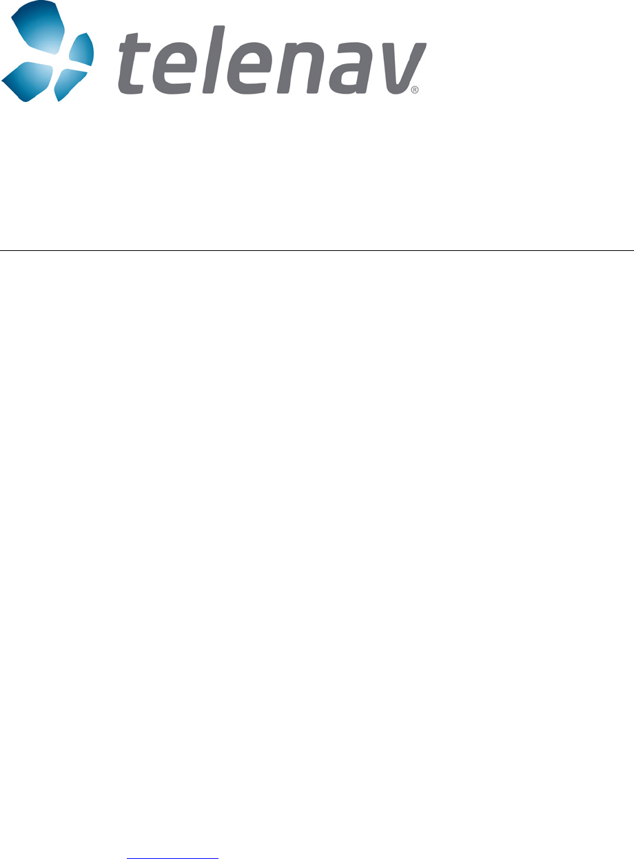 13. Customer Support Send an e-mail with your questions or comments to the appropriate company’s Customer Service Department, or enter a comment through the website. We monitor your e-mails and will promptly reply to your inquiries. TeleNav Inc. 1130 Kifer Road Sunnyvale, CA 94086 www.telenav.com Toll Free: 1-888-353-6284 email: care@telenav.com 14.