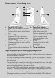 Overview of Your Baby Unit 4 2 7 5 1 1. 2. 3. 4. 5. 3 6 Power ON/OFF switch Slide to turn the Baby Unit on or off. Microphone For transmitting sound to the Parent Unit. Infra-red LEDs 6 infra-red LEDs for night vision. (Note: picture will not be in colour for night vision.) Light Sensor (Night Vision Mode) For detecting when to switch on the infra-red LEDs. Camera Lens For transmitting video to the Parent Unit. 6. 7. 8. 9.