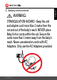 ENGLISH 1. Safety Instructions WARNING: STRANGULATION HAZARD - Keep the unit and adapter cord more than 1 metre from the cot and out of the baby's reach. NEVER place Baby Unit or cords within the cot. Secure the cords more than 1 metre away from the baby's reach. Never use extension cords with AC Adapters. Only use the AC Adapters provided.