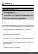 Technical Specifications Baby Unit Frequency 2400 MHz - 2483.5 MHz Operating temperature 5ºC - 45ºC Image sensor Power Adapter Colour CMOS 0.3M Pixels S003GU0600050 (TenPao) Input 100-240VAC, 50/60Hz, 150mA Output DC6V, 500mA WARNING Use only with supplied power supply.