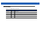 Technical Specifications A-3 Table A-1 MC67 Technical Specifications (Continued) Item Frequency Band Description MC67NA: UMTS/HSDPA and HSUPA: 850, 900, 1900 and 2100 MHz GSM/EDGE: 850, 900, 1800 and 1900 MHz MC67ND: UMTS/HSDPA and HSUPA: 850, 900, 1900 and 2100 MHz GSM/EDGE: 850, 900, 1800 and 1900 MHz CDMA/EvDO Rev A: (800 and 1900 MHz) Wireless LAN Data and Voice Communications Radio IEEE® 802.11a/b/g/n Data Rates Supported 1, 2, 5.