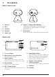 1. At a glance Baby (camera) unit 3 1 6 7 4 5 2 1. Camera 2. Base 3. Speaker 4. Antenna 5. Power jack 6. Power / Linking LED indicator Lights up in blue when the parent unit is powered on and linked to the baby (camera) unit. 7. Pair button Press and hold to pair with the parent unit. Parent unit 9 5 6 7 8 1. Screen display 2. Dual sound level indications (front and top view) 3. Power button Press and hold to turn on or off. Press to turn the screen on or off. 6.