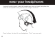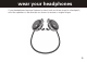 wear your headphones Use both hands to gently rotate the headphones over your head, then place the earhooks and speakers over your ears for a snug fit as shown. Once in place, the back of your headphones “float” over your neck.