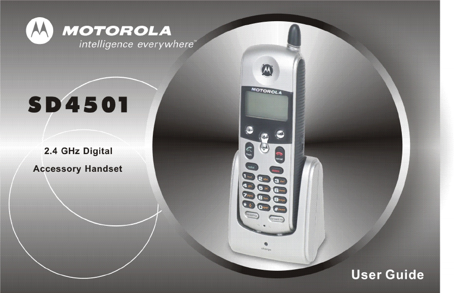 SD4501 BW Handset.book Page i Tuesday, January 25, 2005 7:43 PM Welcome Welcome Congratulations on your purchase of a Motorola SD4501 series telephone. Take a moment to ensure that your purchase includes each of the items pictured. Product registration is an important step toward enjoying your new Motorola product. Registering helps us facilitate warranty service, and permits us to contact you should your Motorola product require an update or other service.