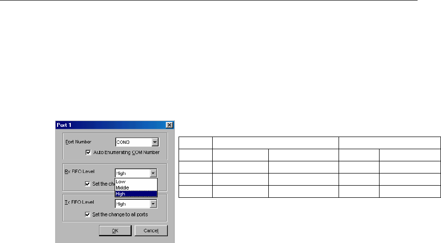 Set the change to all ports check-box to apply the just defined Rx FIFO Trigger to all