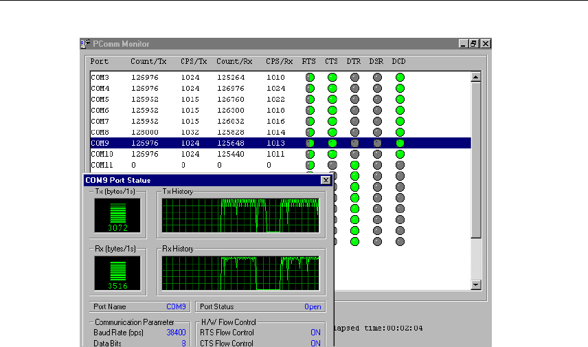 ANSI terminal types. You can transfer data interactively, send patterns periodically, and