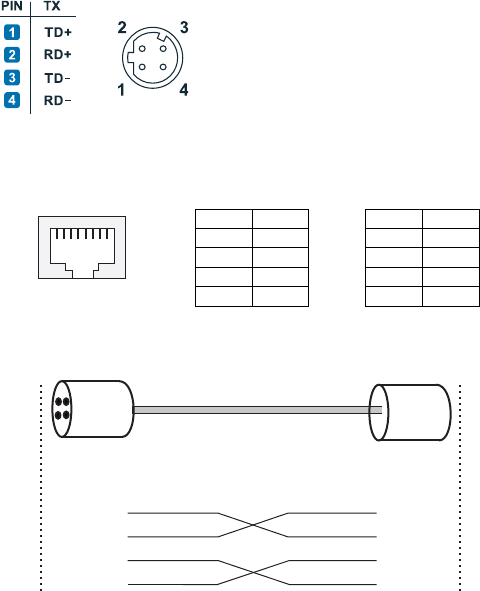 M12 (4-pin, M) to M12 (4-pin, M) Cross-Over Cable Wiring