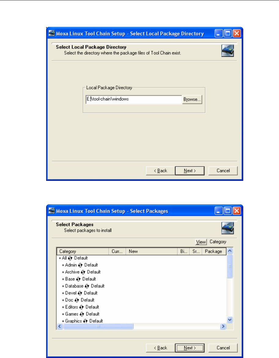 3. Navigate to the directory where the packages of the tool chain reside. By default, it is on the