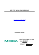 UC-7110 Series User’s Manual The software described in this manual is furnished under a license agreement and may be used only in accordance with the terms of that agreement. Copyright Notice Copyright © 2005 Moxa Technologies Co., Ltd. All rights reserved. Reproduction without permission is prohibited. Trademarks MOXA is a registered trademark of The Moxa Group. All other trademarks or registered marks in this manual belong to their respective manufacturers.