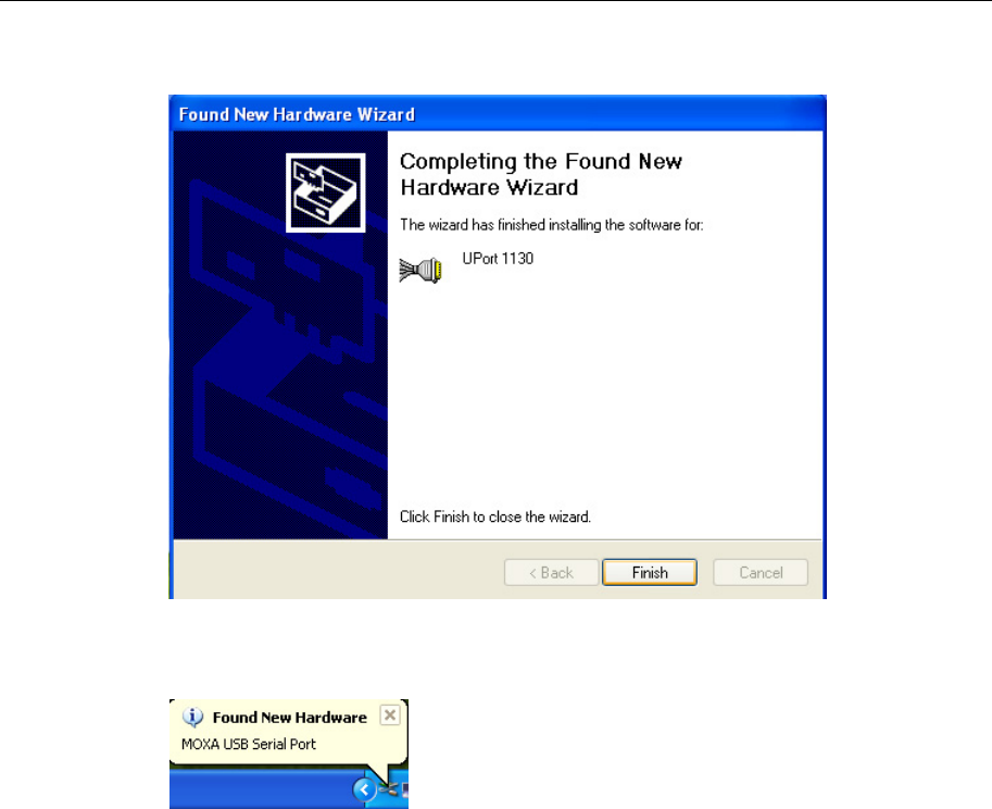 COM port. The Found New Hardware balloon will appear in the bottom right corner of the