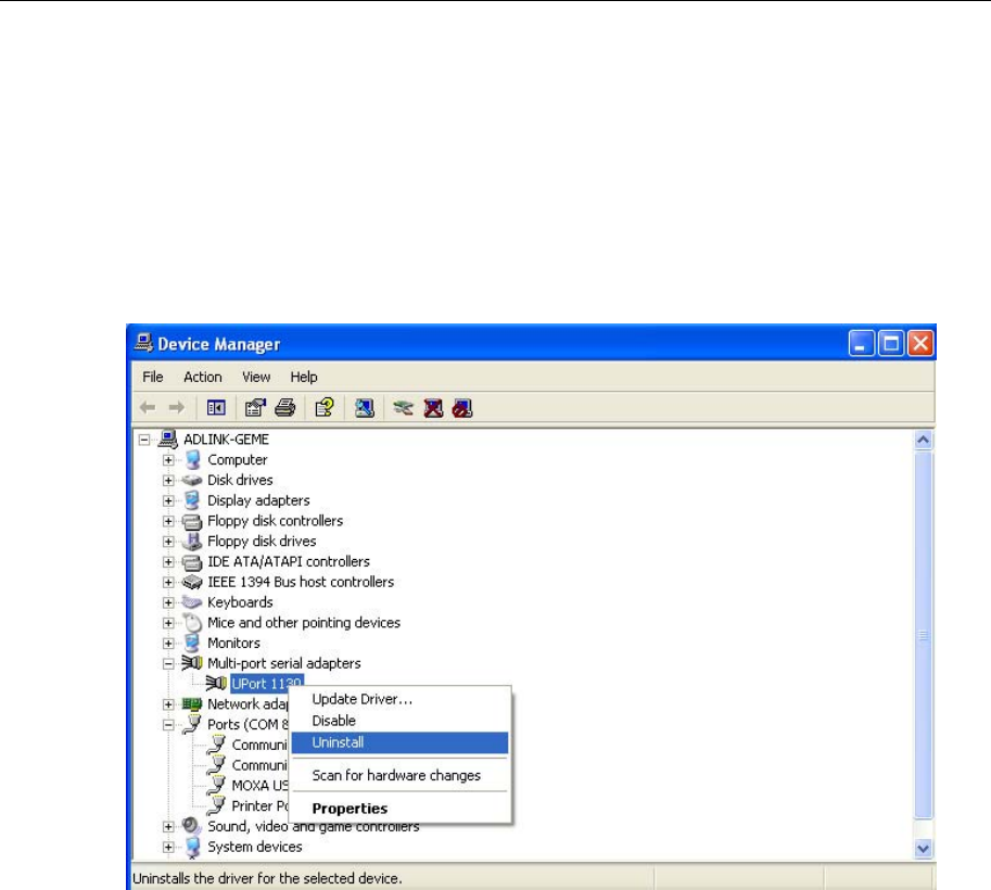 devices. Right-click the adaptor, which will be found under Multi-port serial adaptors, then